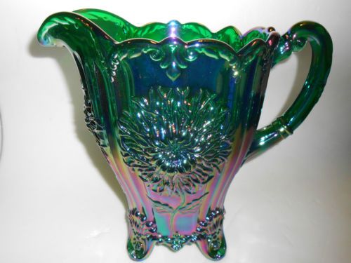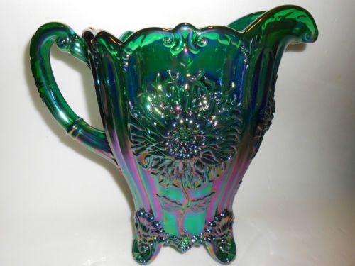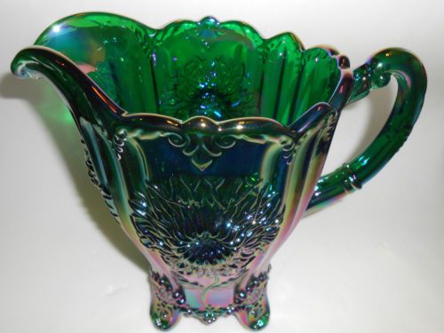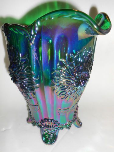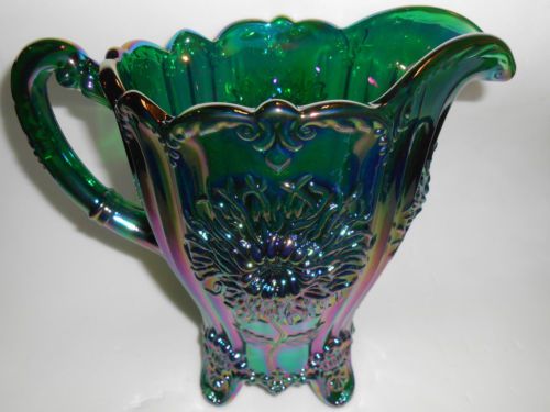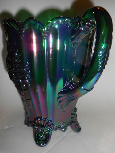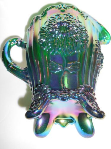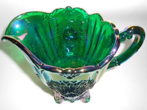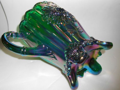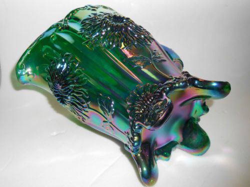 hunter Green carnival glass salt cellar celt cat kitten on nest basket dish art