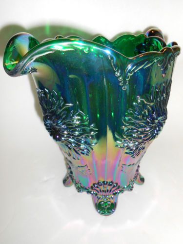 Vaseline glass toothpick holder uranium / Canary yellow 3 toe flowers boyd match