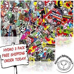 THIS LISTING IS FOR THE PRINT SHOW. HYDRO 3 PACK: YOU WILL RECEIVE THREE 19" X 19" PIECES OF THE FILM SHOWN THIS LISTING IS FOR THE STICKER BOMB 3-PACK INCLUDES: STICKER BOMB A STICKER BOMB B STICKER BOMB C all 3 prints will be in one sleeve if you order more than 1 pack, it will NOT come on a continuous roll, it will be another kit. sent in same box. Will be rolled without any tube/pvc and placed in a poly sleeve for packaging. FREE SHIPPING! PLEASE CHECK BACK OFTEN AS WE WILL HAVE MORE OPTIONS AVAILABLE! ***PLEASE NOTE*** You are purchasing with at least the basic knowledge of the Hydrographic Film process. We are not responsible for any errors of the dipping process of the film due to the lack of experience. PLEASE MAKE SURE ALL SHIPPING INFORMATION YOU PROVIDE US IS CORRECT AT CHECKOUT!!!!!! ALL ITEMS THAT DO NOT GET DELIVERED TO YOUR ADDRESS DUE TO WRONG ADDRESS AND THAT ARE RETURNED TO US, WE CAN RESHIP THEM ONCE WE GET THOSE BACK BUT YOU WILL BE REQUIRED TO PAY FOR THE RESHIPPING AMOUNT OR IF YOU WANT A REFUND, WE WILL REFUND YOU MINUS THE COST OF OUR SHIPPING!!!!! Water Transfer Printing or “Hydrographics” is the latest technology in the custom coatings industry. This easy dipping process is used to apply vivid, high definition graphics to virtually any material. We many of patterns to choose from such as: Camo, Carbon Fiber, Wood Grain, Skulls, Flames, Animal Prints, Abstract Designs, Marbles, Stones, Metals, & More! The applications are endless: Automotive, Motorcycle, Marine, Sporting goods, Electronics, Hunting Equipment, Firearms, Housing Decor, You Name it! If you have any questions please feel free to contact us for more info! Disclaimer: When making this purchase you agree that you have the basic knowledge an understanding of the Hydrographic printing process. We are not liable for any damages or harm you may do to any items. Please visit our FAQ below for safety and guidance. If your question is not answered below, please ask prior to purchase. FAQ: 1: What can be dipped? A: Basically any item that you can get the base coat paint to adhere to and the item can be submerged into water for 30-60 seconds. 2: What is Hydrographics? A: Hydrographic printing is the process that takes pre designed images an applies them to almost any 3-dimensional item. 3: What do I need for Hydrographics? A: at its most basic you need, Container large enough for the item to be dipped, Water, Prep materials for substrate being processed, Base coat paint, Activator, a way to rinse the part after dipping, and clear coat to apply after. 4: What paint should I use for base coat is it even needed? A: Yes you must apply a fresh base coat to any item to be dipped “the exception to this is ABS plastic”. Without the fresh base coat your print will not adhere to the part. We recommend using high quality automotive paints. 5: can I use spray cans form Walmart or home depot? A: NO! the spray cans you get from Walmart and Home Depot will not give you consistent results. These paints do not work well with the process as the paint dries to hard an does not allow the pattern to adhere to the base. 6: can you recommend any base coat brands? A: Yes, I always suggest finding your paint locally from a reputable automotive supplier. I use NASON, PPG, And Sherwin Williams. If you are wanting to buy online, I suggest using Low Country Hydro Paint. They designed an make paint for the hydrographic Process. Its sold in aerosols and HVLP applications. 7: What activator do I use? A: We currently do not sell activator. We are working on this but I suggest 1 activator only it’s the only activator I use in my shop and been dipping for over 8 years. Its called Hydro-Vator by Express Chem. It can be found online by searching “Hydro Vator Activator” Its sold in cans or aerosols. You can use this with any film on the market with practice. Just need to learn to read films to decide if they need more or less activator. 8: What side of the film goes on the water? A: When unrolling the film it can get confusing to what side goes to the water. Even myself after 8 years have to check from time to time. Best method I found is by wetting your thumb an pointy finger and pinch the corner of the film. As your release your pinch the side that sticks to your finger is the side that goes to the water. 9: Why do I got pin holes after I rinse the part. A: Not enough activator or unevenly sprayed. 10: The pattern rinsed off and smeared. A: To much activator 11: I’m getting large air bubbles that pop and leaves a void. A: Your trapping air try with more angle 12: the film distorts as I spray activator A: either spraying to much or need to close your dams to not allow it stretch as far. 13: how durable is the finish? A: Its only as durable as the materials you use when doing the process. I always tell my customers it’s as durable if not more durable than any car that’s on the road today. 14: What temperature does the water need to be? A: It’s been industry standards for years to have your water at 90 degrees for the process. Many have started using colder water in the range of 60-75 and have had success saying heavy ink films stay brighter. 15: How much film should I use for “Blank” A: without seeing your item I can’t give you and answer. I suggest looking at the item and leaving enough film on the sides to take in account for all the stretch the film has to do to get to all places on the part being dipped. 16: Where can I get help or more information on hydrographics? A: your always welcome to ask a question. If you’re looking for official training there are several companies who offer this. Besides official training you can look for instructional videos online and many forums are created for this process. 17: I don’t have spray equipment or large area to do this can I still do the process. A: If you’re just wanting to do some small parts for yourself absolutely. Activator, Base coat paint, and Clear coat as expla