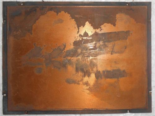 India Vintage Printers Copper Block Church Wood Base Removed From Back s1051