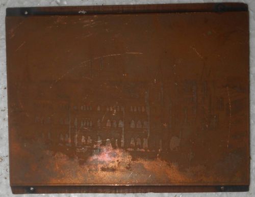 India Vintage Printers Copper Block Historical Places Wood Base Removed s1046