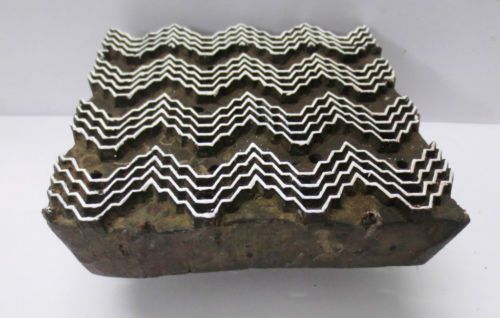 INDIAN WOOD HAND CARVED TEXTILE PRINTING FABRIC BLOCK STAMP ZIG ZAG LINE CARVING