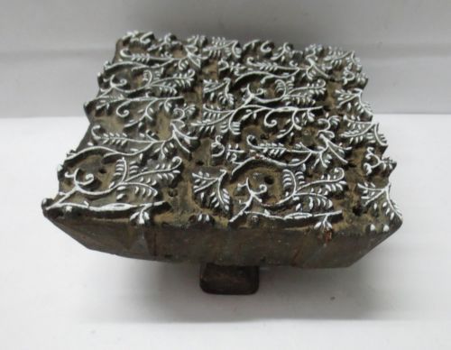 VINTAGE WOOD HAND CARVED TEXTILE PRINTING FABRIC BLOCK STAMP UNIQUE CUT PATTERN