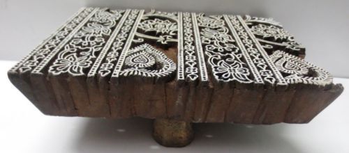 INDIAN WOODEN HAND CARVED TEXTILE PRINTING FABRIC BLOCK STAMP FLORAL LEAF DESIGN