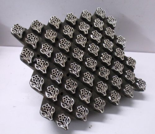 ANTIQUE INDIAN WOOD HAND CARVED TEXTILE PRINTING FABRIC BLOCK STAMP FINE FLORAL