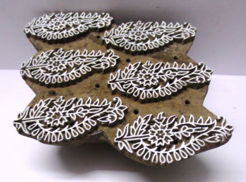 INDIAN WOODEN HAND CARVED TEXTILE PRINTING FABRIC BLOCK STAMP FINE FLORAL LEAF
