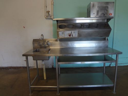 You are bidding on A USED CONDITION "IRCO ELECT" SS COMMERCIAL COLD DRINK/DESSERT PREP STATION w/REFRIGERATED RAIL MODEL#: NO DATA PLATE FOUND 120V, 60HZ, 1PH, 4.1Apms. 1/6HP 76 1/2"H x 76"W x 28"D(OVERALL) 7"H x 14"W x 14"D (HAND SINK) 9"H x 45"W x 14"D (REFRIGERATED CONDIMENT RAIL W/6 RECEPTACLES) 6 1/2" OPENING PER HOLE 7"D 48"W x 23"D (TWO LOWER SHELVES) THIS UNIT WAS IN OPERATION WHEN REMOVED FROM A CLOSING BUSINESS. THE CONDITION AND ALL ACCESSORIES INCLUDED WITH THIS ITEM IS AS SHOWN IN THESE PHOTOS, SELLING AS IS. ID# 07-0122B LOC. A1 Welcome to “Bargains “R” Ours Food Equipment”, where you can get Restaurant and Food Service equipment at a bargain! Our 35,000 sq. ft. warehouse, with over 4000 items, is located in Battle Creek, Michigan. We are one of the largest used restaurant equipment re-seller in South West Michigan specializing in Restaurant; Bakery; Pizza; Ice Cream Shop; Grocery Store; Deli; and Supermarket equipment. We work closely with Repossessing Companies and Banks, so we are able to get these equipment at low prices which we are able to pass on the saving to you. Why buy new? Save BIG $$$$ here! Thank you for visiting our store, and may you all have The Happy Life.............. We ship to your PAYPAL shipping address, UNLESS you contact us and tell us otherwise. Please call (269)-963-3333 for more information and faster service, if no answer, you may call (616)-638-2465..... Also click this link http://stores.ebay.com/BARGAINS-R-OURS to save big $$$$$ for restaurant equipment, indoor, outdoor lightings, household goods, tools and much more! For our store inventory, please visit our “pro-store”: www.Bargainsfoodequipment.com and save money here! Thank you very much for visiting our store... Bargains-R-Ours offers the following Policies: PAYMENT OF ITEMS We accept PayPal and other payment methods, please call us for specifics. Payment must be made within 5 days of winning bids, or acceptance of your offer. We will send you a final notice if we don't receive your payment after 7 days of the sale date, and report your account to eBay for dispute of non-payment. Then, we will re-list the item. If you are not so sure as to how to pay, un-willing or unable to pay for your purchase, please do not bid or make an offer. It is unethical, and a waste of both our time! You agree to pay a 15% “restocking fee”, if you do not pay after committing to a purchase, either by “winning an auction” or “making an accepted offer”. Regardless if you, or someone with access to your eBay account, made a mistake or have no funds available to pay for the committed purchase. For sales to Michigan residences, we are obligated by law, to collect a 6.00% sales tax SHIPPING AND CLAIMS Please check all items for damage immediately upon delivery, BEFORE accepting them from the Carrier!! If you fail to do so, you may forfeit any damaged shipment claims once and for all! We ship anywhere in US and Canada. For Canada, we need your “Custom Broker's” name and number for Custom Agency purposes. If you do not have one, we can refer you to one. For overseas shipping, we will ship to a “Port Terminal” anywhere within the continental USA. Then, you must arrange for your own shipping to the destination country. We have a loading dock and a forklift for local pick-up of large and heavy items Used equipment will be shipped in the condition as described in the published listing. Please allow up to 2 days after payment have been received and cleared to our account, for item to be shipped. The “Buyer/Consignee” is responsible for filing claims with the Shipping Carrier. We will give you any information you need, and assist you all that we can in expediting your claim. If anything is wrong with the item, please note it on all copies of the “Delivery Receipt” and immediately contact the Carrier to file a claim. KEEP the original packaging until inspected, and then follow the claim instruction. Please understand that the Shipping Carrier is a separate entity than us, and we are not liable for items that are damaged in transit, as they are beyond our control. Our shipping quote price is for delivery to a COMMERCIAL address with unloading as your responsibility. Please let us know if your shipping address is for a commercial/business, residential, church or school (For freight shipping only) You MUST specify whether or not you will need a “lift-gate” service to unload the shipment.( For freight shipping only) The name of your Business. ( For freight shipping only) The contact person for delivery The phone number for the contact person Additional $75 charge for residential delivery and $ 49.99 charge for ”lift-gate” unloading service (For freight shipping only) The buyer is responsible for all additional freight services they request at the time of delivery and any applicable surcharges/fees thereof above and beyond what was ordered prior to shipment of the freight. For UPS shipment, you must provide a physical address other than a PO Box number REFUNDS AND RETURNS Returns that are unrelated to warranty issue, is subjected to 15% re-stocking fee Refund and Returns is governed by eBay “buyers’ protection policy” Items are sold as seen in the published photos of the listing. As a re-seller of “Repossessing Companies”, we tested all used equipment before removing them from their locations – (closing/closed businesses) - and publish all that what we know in the listing of the item(s). All warranty claims, must be accompanied with a “Certified Technician Service Report” within 14 days of delivery of the item. Warranty, as expressed above, covers cost of defective “parts” only. If you have any problems or concerns, please contact us immediately and allow us the chance to remedy the issues before leaving a negative feedback. We will address any issues you raised, promptly, and come up with a resolution that is equitable - within the guideline set forth under eBay