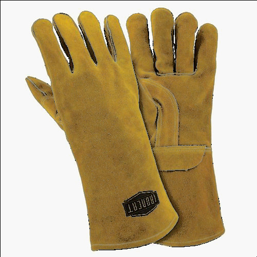 New pair of Slightly select shoulder cowhide provides excellent protection in high heat welding conditions at an affordable price. 14 in. protects hands and arms from sparks and spatter.