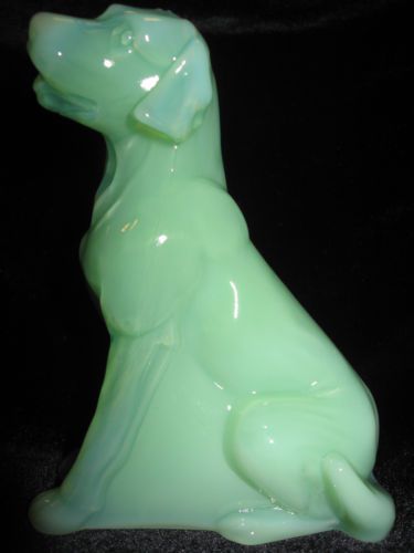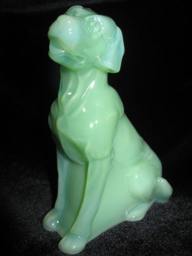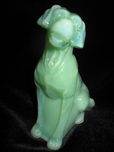 ADORABLE Vaseline Opalescent glass Labrador Retriever yellow Lab dog figurine