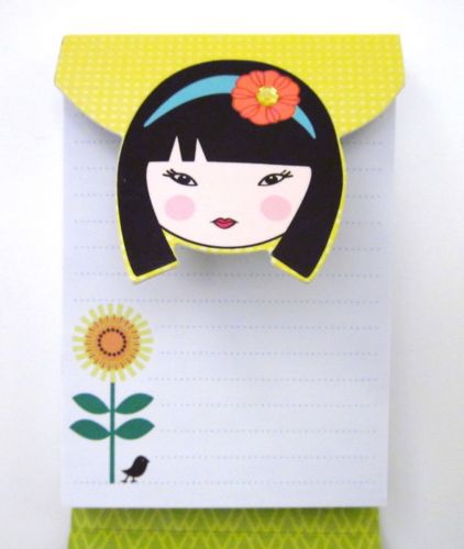 JAPANESE KOKESHI DOLL MINI NOTE PAD ~ MAGNETIC CLOSURE ~ GREEN ~ NEW