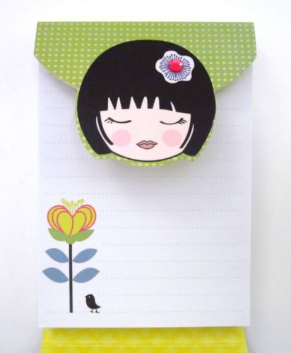 JAPANESE KOKESHI DOLL MINI NOTE PAD ~ MAGNETIC CLOSURE ~ YELLOW ~ NEW