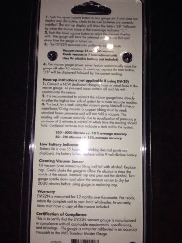 JB Industries DV-22N Electronic Vacuum Gauge Gage AC HVAC Air Cond Conditioning
