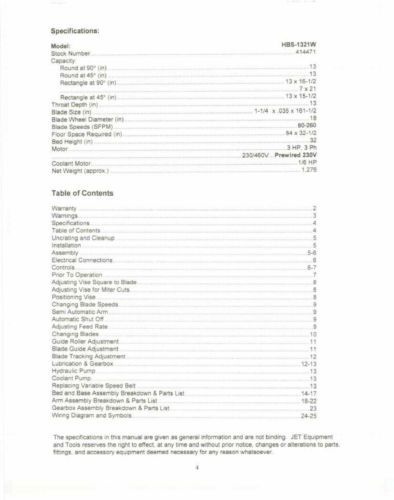 Jet HBS-916W & 1018W Band Saw Owners Manual *249