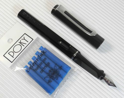 JINHAO 599B Fountain pen BLACK plastic barrel free 5 POKY cartridges BLUE ink