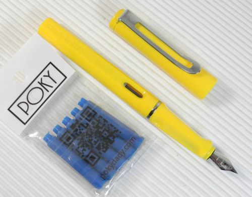 JINHAO 599B Fountain pen YELLOW plastic barrel + 5 POKY cartridges YELLOW ink
