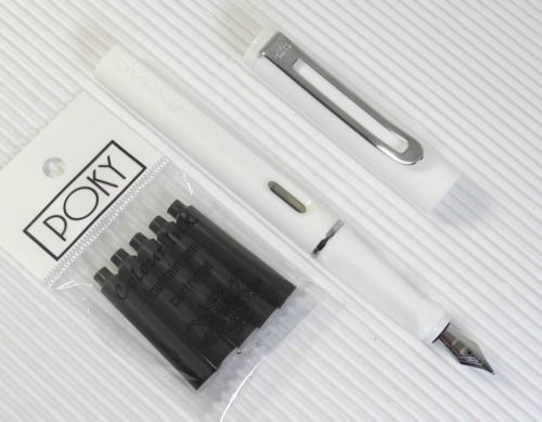 JINHAO 599B Fountain pen WHITE plastic barrel free 5 POKY cartridges BLACK ink