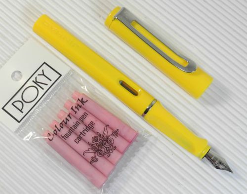 JINHAO 599B Fountain pen YELLOW plastic barrel + 5 POKY cartridges YELLOW ink