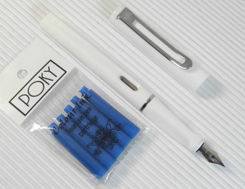 JINHAO 599B Fountain pen BLUE plastic barrel + 5 POKY cartridges VIOLET ink