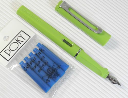 JINHAO 599B Fountain pen APPLE GREEN plastic barrel + 5 POKY cartridges BLUE ink