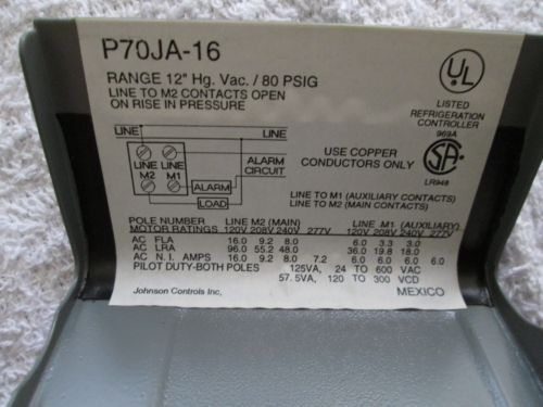 Johnson Controls Pressure Switches, Lot of 2. Model: P70CA- 61 - 20" to 100 psi.