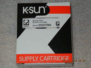 K-Sun 203STBW Shrink Tube BLACK on White Label Cartridge, EPSON 203STBWPX, New