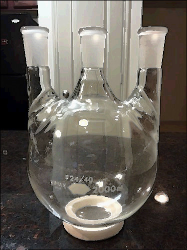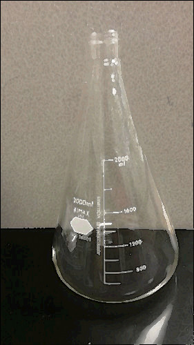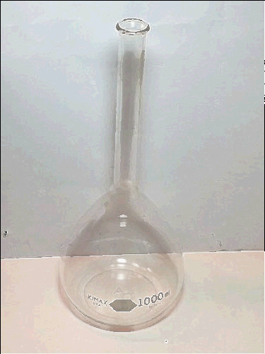 This is a used Kimax 500 mL flask with graduation line etched through vertical red stripe. It does not include a stopper. Terms: All equipment is sold in its current state as is, where is.