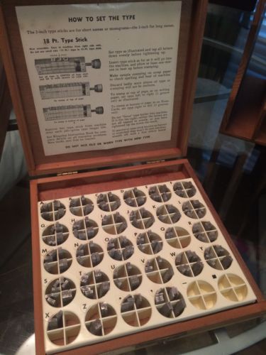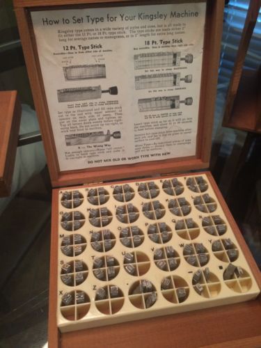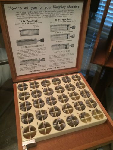 Kingsley Stamp Machine Letterpress Type Letters in Wood Box Brush Caps 18pt