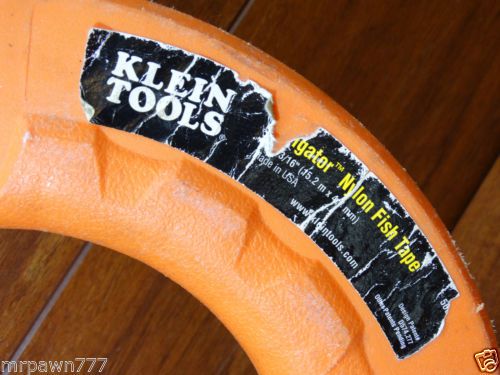 “THIS LISTING IS FOR: KLEIN TOOLS Fish Tape, Nylon, 3/16 Dia x 50 Ft... CONDITION: THIS IS A PRE-OWNED ITEM AND MAY HAVE SOME COSMETIC SINGS OF USE, LIKE SCUFFS & SCRATCHES, BUT OVERALL IT'S IN GOOD FUNCTIONAL SHAPE.... PLEASE SEE PICTURES” |