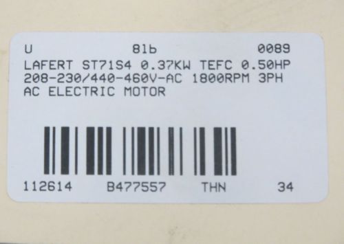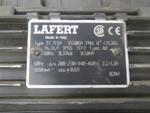 LAFERT AF 63 A4 AC 1/3HP 230/460V-AC 1560RPM ELECTRIC MOTOR TEFC D201250