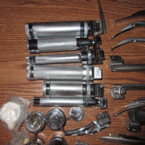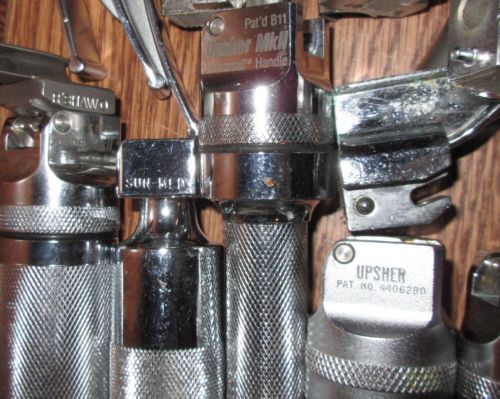 2 Vintage Surgical Laryngoscope Handles and 8 Blades