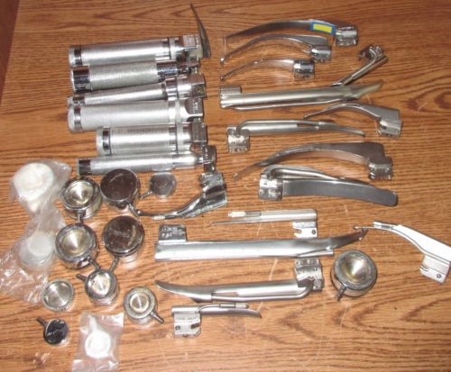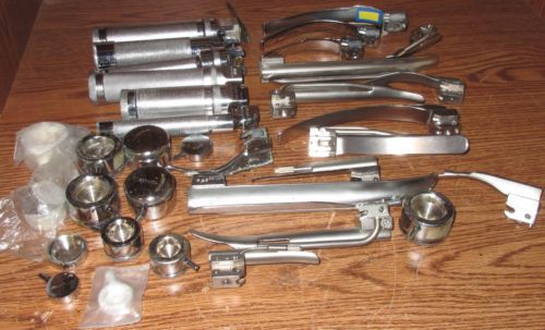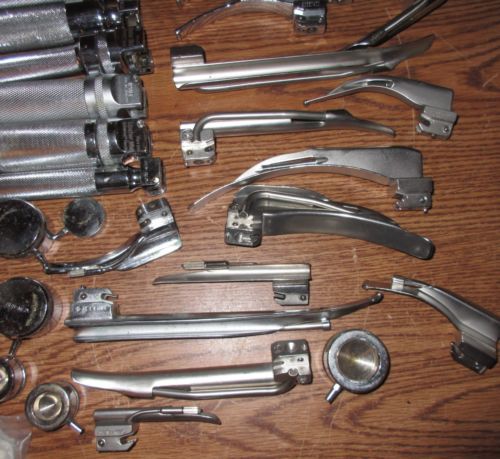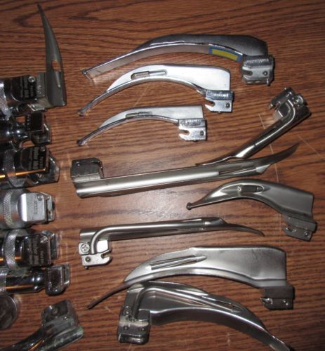 FIBER OPTIC LARYNGOSCOPE MAC + MILLER SET OF 18 EA ! EMT Anesthesia Intubation