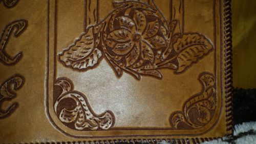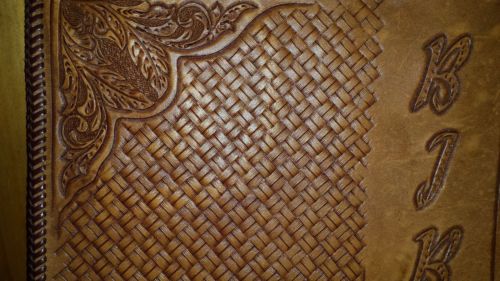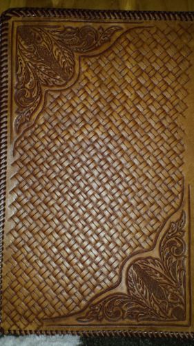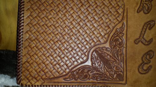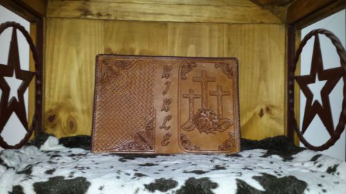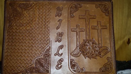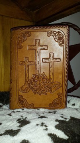 Western Large Bible Cover Handmade Tooled Cowboy at Cross Leather Brown Natural