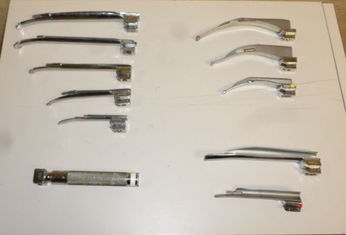 Laryngoscope w/ 13 Blades MAC 1, 2, 3, 4 MIL 0, 1, 1.5, 2, 3, 4 WIS 1, 1.5, 3