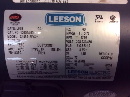BALDOR INDUSTRIAL MOTOR M3546 1 HP 208-230/460 V 3.6-3.4/1.7 A 1725 RPM PH 3