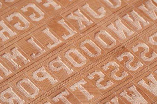 Letterpress Bauhaus uppercase wood type 8 line - 75 pieces