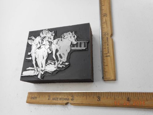 Letterpress Printing Printers Block, Harness Horse Racing w Sulkies & Drivers