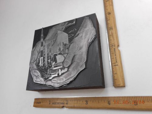 LETTERPRESS PRINTING BLOCK NEST, CHICKENS, EGGS WITH HAND VINTAGE
