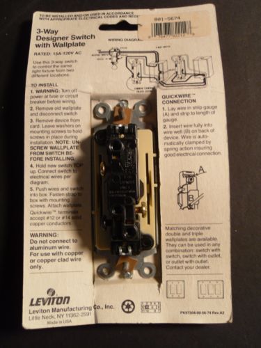 Leviton Decora 15A-120V 3-Way Illuminated Switch #5674 Almond 1 Pc. NEW