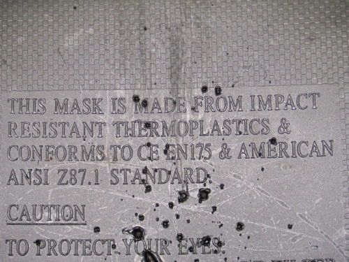 | “THERE IS SOME PAINT SPLATTER ON THE FACE, THE HANDLE IS MISSING THE RED TRIGGER THERE IS SOME WIRE ON SPOOL HALF FULL MAYBE A LITTLE LESS. THIS ITEM WORKS PERFECTLY. HELMET HAS SOME SCRATCHES ON REMOVABLE IMPACT LENS PROTECTOR SEE PHOTOS. ALL ITEMS ARE INTACT AND WORKING OTHER THAN SECONDARY EASY TO PULL TRIGGER WHICH PRESSES DOWN ON BUTTON TO PERFORM YOUR TASKS.” |