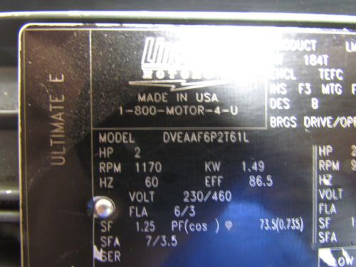 RELIANCE DUTY MASTER AC MOTOR 2YAB28670A2 3HP 855 RPM 215T FRAME
