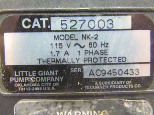 Little Giant NK-2 527907 Submersible Pump 115V For Parts or Repair