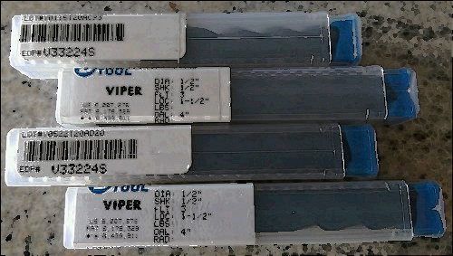 loc 1 for sale, Ridgid 1/2"-3/4" high speed npt 50012 pipe dies nib    loc: h 4loc 1 for sale, Dumont minute man broach set no. 30 (incompplete)      loc: f 3loc 1 for sale, Destiny tool v33224s viper 1/2, 3 flt, 1-1/2 loc, 4 oal, variable helixloc 1 for sale, End mill 1x1"x 41/2" oal  2 fl r.25"  hss loc 2.06 " machine shoploc 1 for sale, End mill 2"x 1 1/4" 2 flt 45 deg. cham x.10 loc 2" cnc shop usaloc 1 for sale, Niagara t-slot cutter hss #2117 21/32 dia.   loc: j 1-1-2loc 1 for sale, Fette thread rollers 1/2-20 unjf   loc: f 3loc 1 for sale, Namco  n-3 thread roll rolling head 7/16 - 7/8  1-3/8 shank      loc: f 1loc 1 for sale, Fette thread rollers 1/2"-20  unjf lightly used  loc: f 3loc 1 for sale, Mitsubishi bsx400r 0306c facemill cutter 3" dia.  1" arbor 6 flute    loc: p2-4loc 1 for sale, Nice lot of adjustable coolant hoses and reducers 1/4" loc-lineloc 1 for sale, Fette  e16 radial rolling head 1/2"-5/8"     loc: f 1loc 1 for sale, Nmtb #30 mill arbor 1" x 1-7/8" + 8 spacers       loc: p2-4loc 1 for sale, Jones & lamson hartness high speed automatic die head size 4h model b loc: f 1loc 1 for sale, Sandvik l151.2-300 05-4e 235 5 pack loc: j 3-5-1loc 1 for sale, Mini-t-loc insert with 5 divisionsloc 1 for sale, Vdi 40 tool holder for 1-1/2" diameter tool   loc: p2-3loc 1 for sale, No name vdi 40 tool holder for 1-1/2" tool   loc: p2-3loc 1 for sale, Trudex vdi 40 tool holder for 1-1/2" tool #713.015.247   loc: p2-3loc 1 for sale, R8 shell mill holder 1"  loc: p2-3
