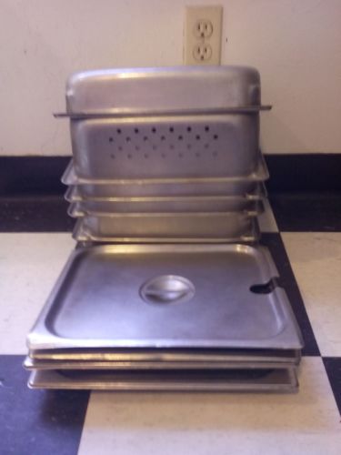 **LOOK HERE**Lot of 6~1/3 size Stainless Steel Steam Table Inserts with LIDS