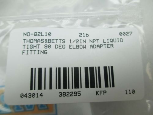 LOT 11 NEW THOMAS&BETTS 1/2IN NPT LIQUID TIGHT 90 DEG ADAPTER FITTING D382291