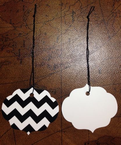Lot 200 Chevron Ornate Designer Print Merchandise Strung Price Tags 8cm x 7cm L