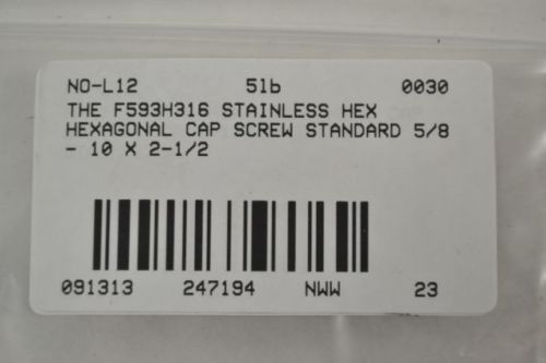 LOT 15 THE FS316 F593-H STAINLESS HEX CAP SCREW STANDARD 1 - 8 X 2-3/4 B247220