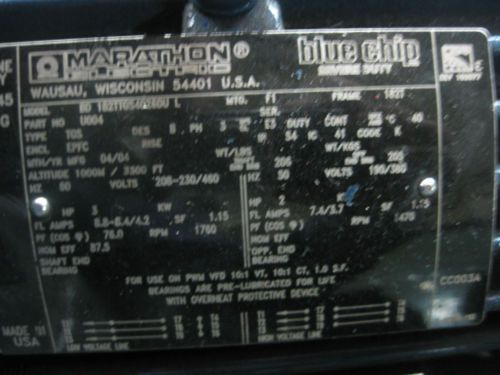 Pentair Water 2hp Pump Motor G43A0020B2 12.4A 2850 RPM 1 Phase 230V