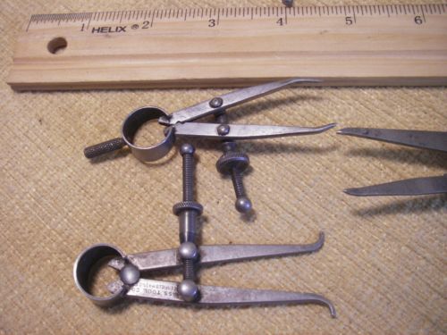 Asstd Big Machinist Tools-4 Yankee Spring Style Dividers- 2 Outside Bow Calipers