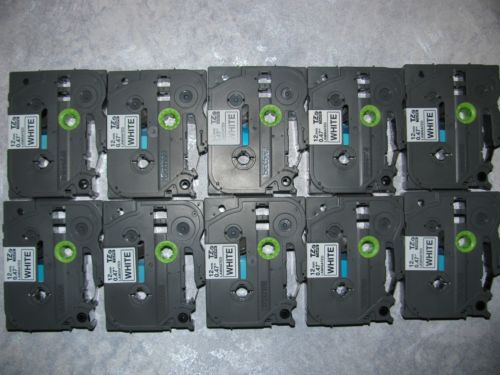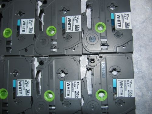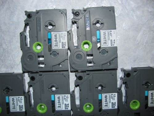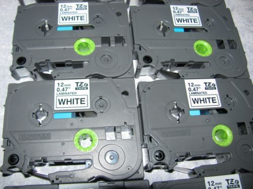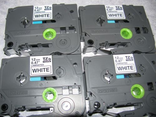 (4) BROTHER P-TOUCH TAPE LABEL CASSETTE TC-20 BLACK ON WHITE 12MM 1/2" LABELS