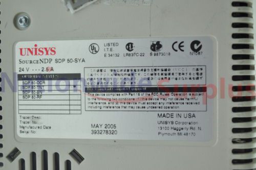 Unisys SourceNDP SDP 50-SYA Check Scanner w/ Power Supply & Network Card Adapter